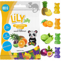 Żelki z zestawem witamin marki Lily Jelly to słodkie, bezcukrowe żelki o smaku owoców tropikalnych - ananasa, limonki, marakui i pomarańczy. Doskonała przekąska która w chwilę zaspokoi ochotę na słodycze nie dostarczając ani grama cukru.