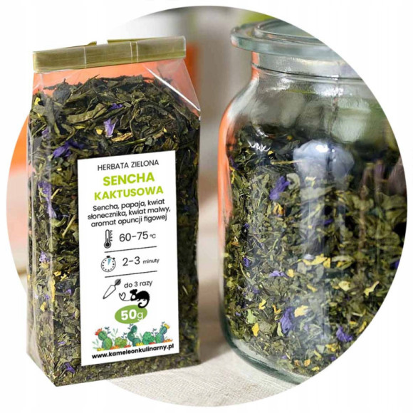 Sencha, papaja, kwiat słonecznika, kwiat maliny, kwiat malwy, aromat opuncji figowej