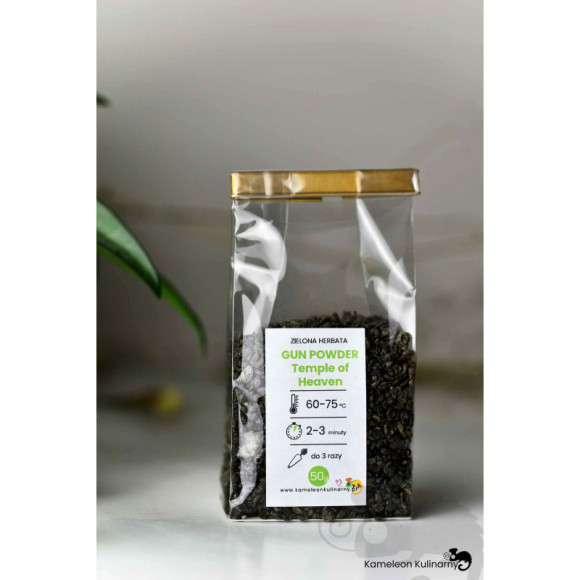 Gun powder Temple Of Heaven charakteryzuje się delikatną, ziołową nutą i głębokim aromatem.