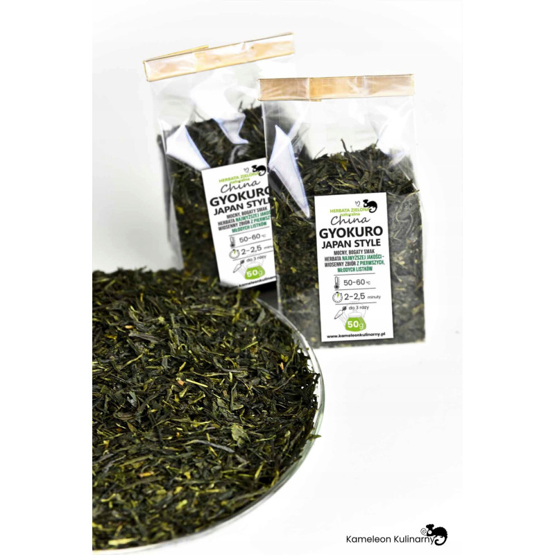 GYOKURO to herbata najwyższej jakości, pochodzi z pierwszych, wiosennych zbiorów listków. Uważana jest za najlepszą zieloną herbatę na świecie. Ma mocniejszy, bogatszy smak niż Sencha.