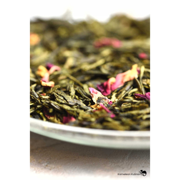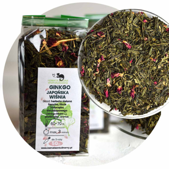 Skład: herbata zielona Sencha, liście miłorzębu dwuklapowego (ginkgo Biloba L), płatki róż, aromat