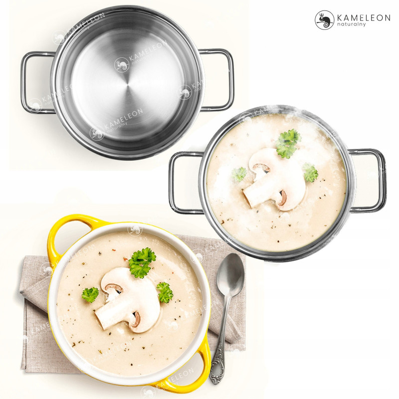 woda, pieczarki 18 %, ziemniaki, śmietanka, cebula, seler, skrobia modyfikowana, pietruszka, marchew, sól, pieprz, ekstrakt drożdżowy, przeciwutleniacz: askorbinian sodu.