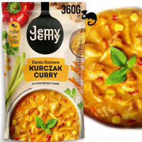 mięso z kurczaka 30%, woda, warzywa , marchew 10 %, papryka czerwona 4 %, cebula, kukurydza 4%, pędy bambusa, papryka zielona ekstrakt z kokosa 7%, śmietanka, skrobia modyfikowana , masło, mąka pszenna, olej rzepakowy, sól, mieszanka przypraw curry 0,48% zawiera gorczycę, trawa cytrynowa 0,3%, czosnek, imbir, ekstrakt drożdżowy, koncentrat soku z cytryny w proszku, papryka mielona, kolendra, przyprawy, przeciwutleniacz, askorbinian sodu